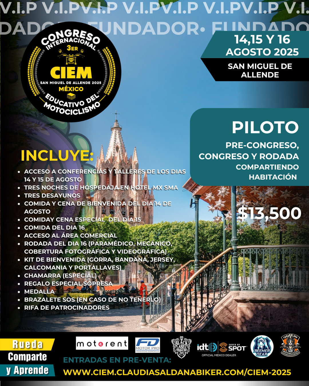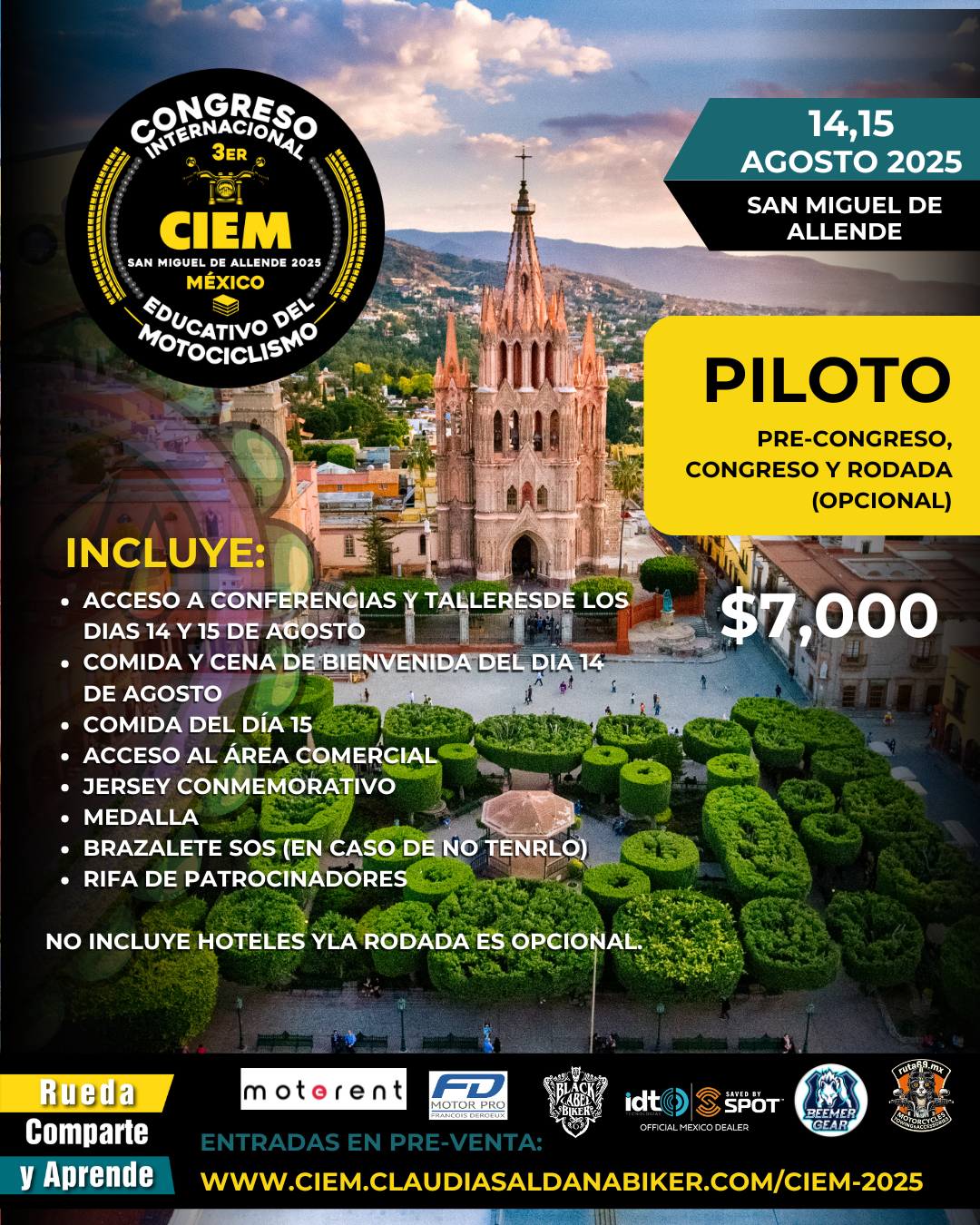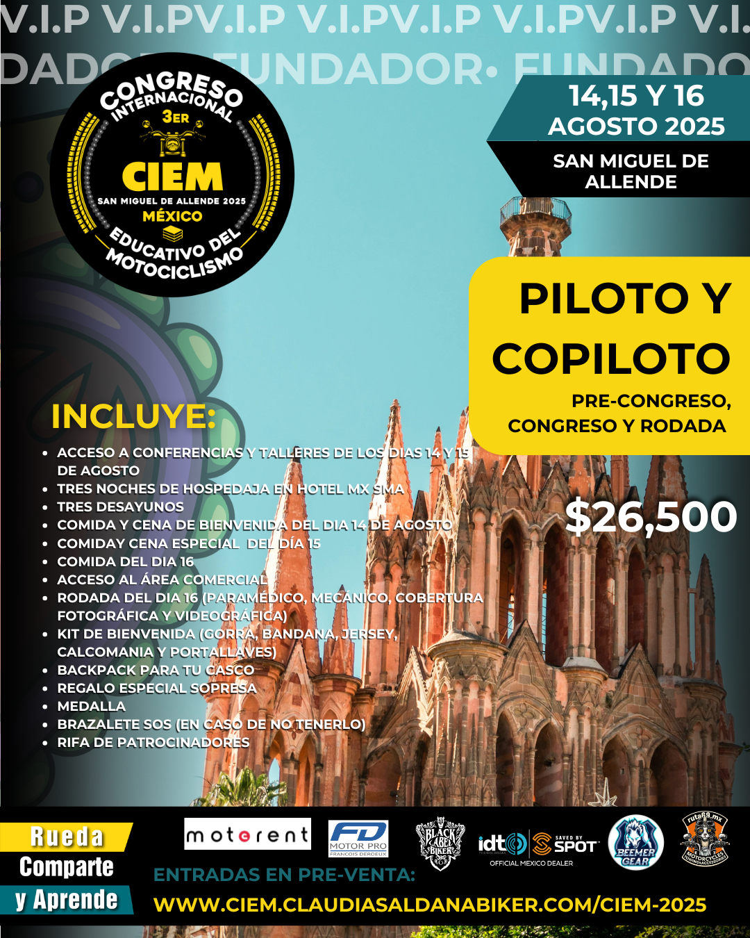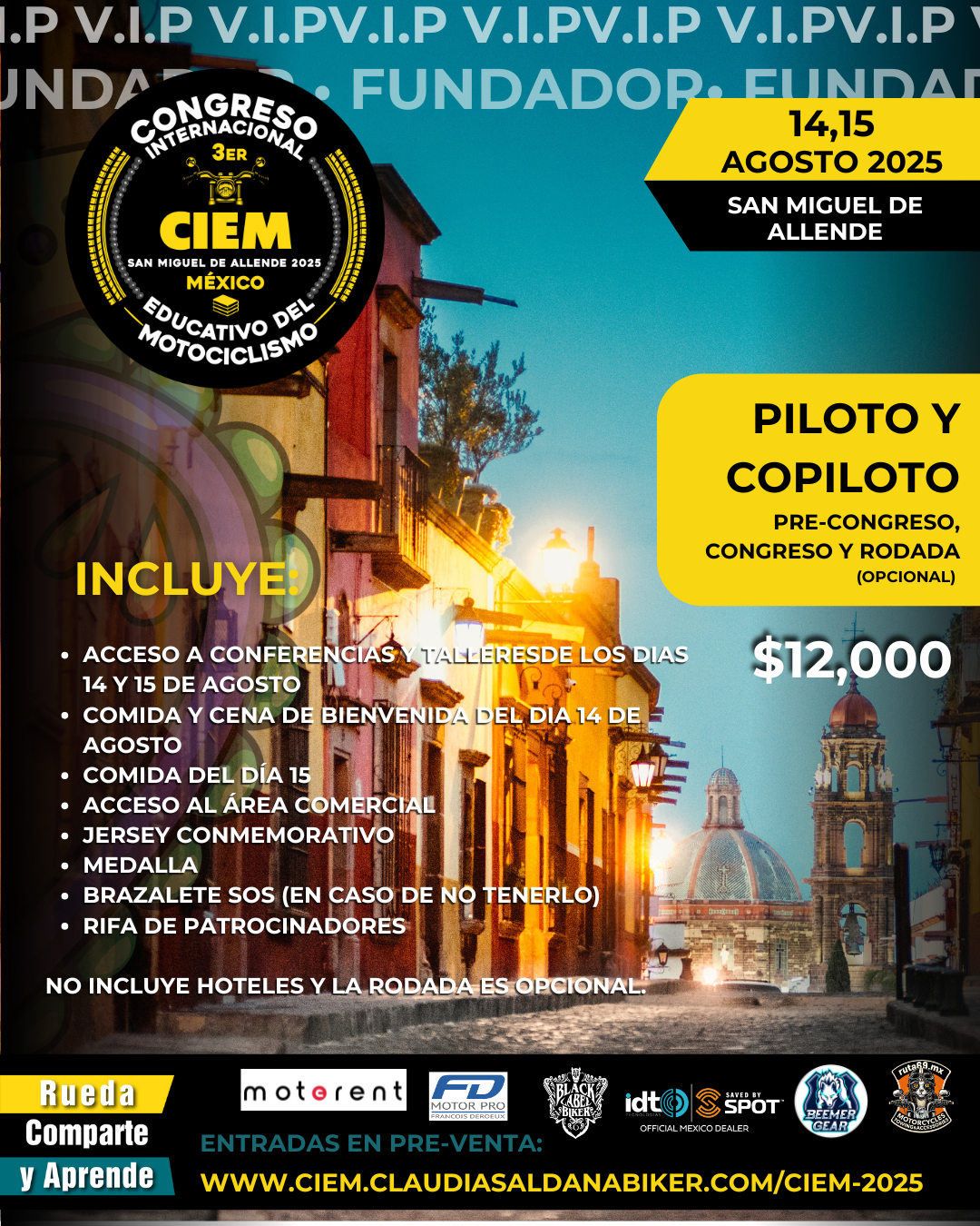 PILOTO Y COPILOTO ENTRADA AL CONGRESO Y PRE-CONGRESO (RODADA OPCIONAL)